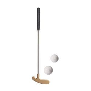 Introducing the Desktop Mini Golf Putter Set, featuring a zinc alloy and stainless steel putter and two PU foam balls.