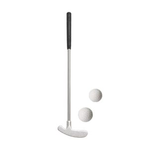 The Desktop Mini Golf Putter Set, featuring a zinc alloy and stainless steel putter, complete with two PU foam balls. This compact and portable set brings the fun of mini golf right to your desktop, allowing you to practice your putting skills and enjoy a game of golf anytime, anywhere. Whether you’re looking to destress at work or add some fun to your home office, this Desktop Mini Golf Putter Set is the perfect way to relax.