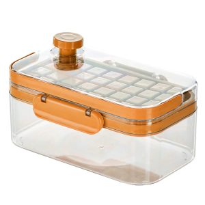 This ice cube tray is designed with a press-type mechanism, allowing for effortless removal and storage of ice cubes. Crafted from premium quality PET, ABS, and plastic materials, this tray not only ensures durability but also promotes eco-friendliness. Perfect for various scenarios such as parties, picnics, camping trips, and everyday home use, this ice cube tray allows you to effortlessly make and store ice cubes in a neat and efficient manner.