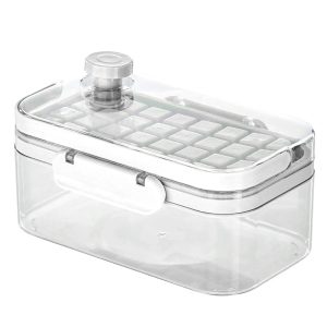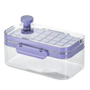 This convenient ice cube tray features a press-type design for easy ice cube removal and storage.