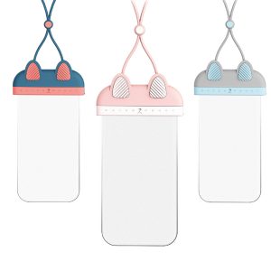 The sealed waterproof bag design plus sealing strip protection, doubling the insurance factor, IPX8 waterproof rating. Super large capacity can put down 7.0 inch and below cell phones. Plus sealing strip in the shape of a cute kitten.
