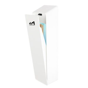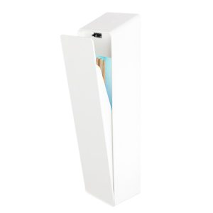 The wall-mounted sterilized chopsticks tube has individual draining and can hold up to 20 pairs of chopsticks. It uses a magnetic induction switch to open the lid and power off and close the lid to start.