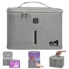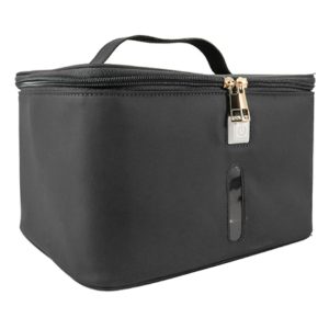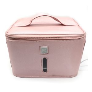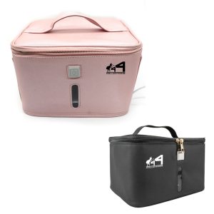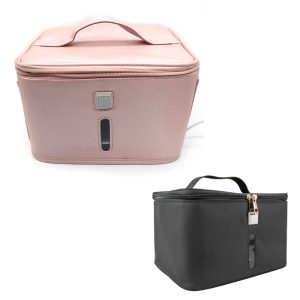 The UV Sterilization Bag has a switch on the front, a zipper closure at the top, and a carrying handle. There is a pocket on the back. It can be used for baby’s toys, bottles, pacifiers, masks and other daily necessities.