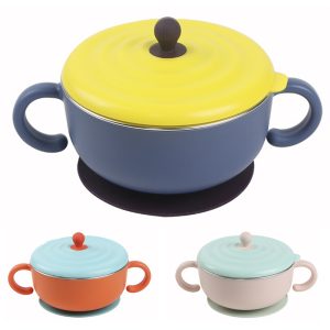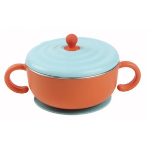 This complementary food bowl is made of food grade stainless steel and food grade PP. It is convenient to clean, and does not hide dirt. Double ear handle, more convenient to hold, suitable for baby’s hand to hold. The food trough is deep, so that the food is not easy to slip out, and it has suction cups at the bottom. It is safe, durable and available in multiple colors.