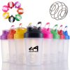 This 33.8oz water bottle is made of PC. It comes with a time marker, with carrying strap. This 33.8-ounce water bottle is 100% BPA and toxin free, odor free. Simply open with one hand by clicking the button, the flip top lid is equipped with a secure lock, making it dust-proof and leak-proof. Perfect for fitness, gym and outdoor sports.
